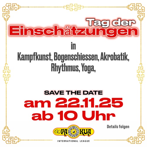 In München kannst du Kampfkunst, Cosmodynamic (Pa-Kua Tai Chi), Bogenschießen, Akrobatik, Schwertkunst, Sintonie (Pa-Kua Yoga), Rhythmus, Pa-Kua Chi trainieren.
